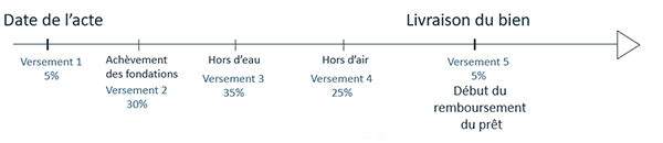 Exemple : sur une VEFA, le déblocage des fonds se fait en 5 versements.