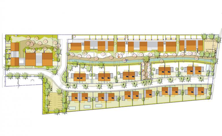 Dans ce projet immobilier de 2 étages retrouvez 37 lots, dont 21 maisons neuves, ils offrent des typologies allant du T2 au T5. Les lots sont équipés, pour certains, d'espaces extérieurs : des balcons, des terrasses, la plupart intégre des stationnements.